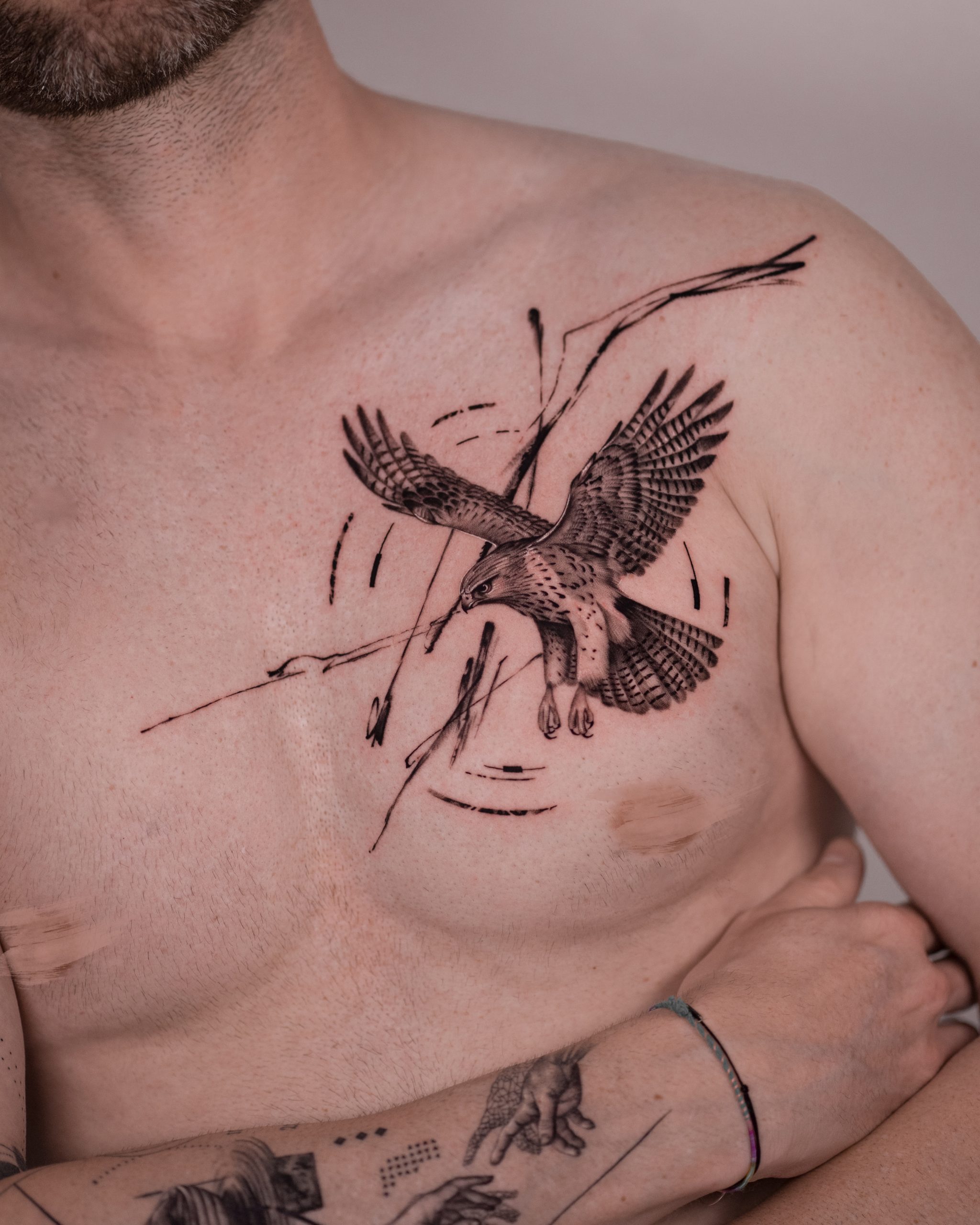 A fólia 1–2 órán belül lazul, kényelmesebbé válik. Később jelentkezhet alatta váladék – ez normális. Ha túl soknak tűnik, kérdezd meg a tetoválód.